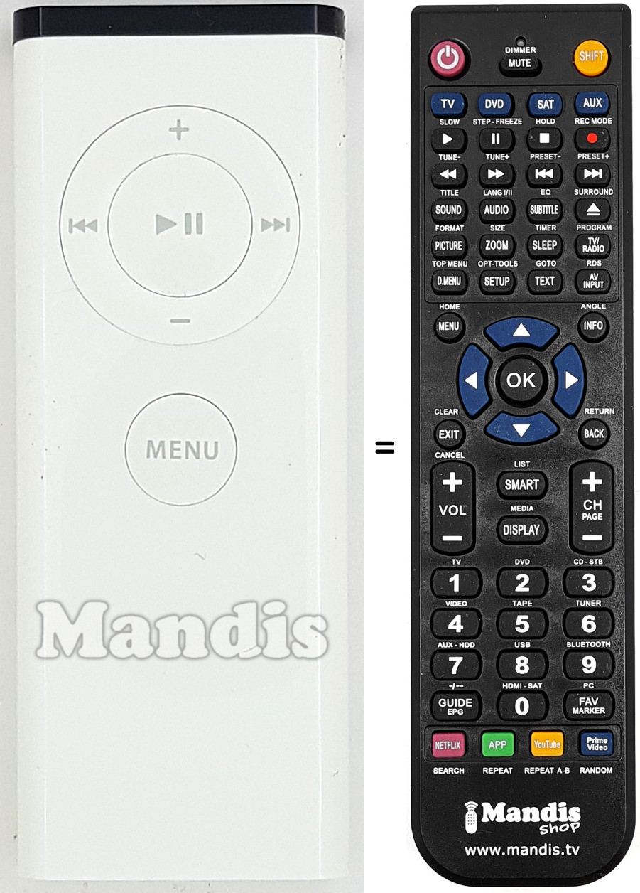 Below, we will show you the correspondence between each button on the original remote control and the button that performs the same function on the replacement remote control. In some cases, you may need to press the SHIFT key before pressing another button to perform certain actions. These additional functions are often not widely used and are included to facilitate understanding of the replacement remote control, or because the original remote control has more buttons than its equivalent.