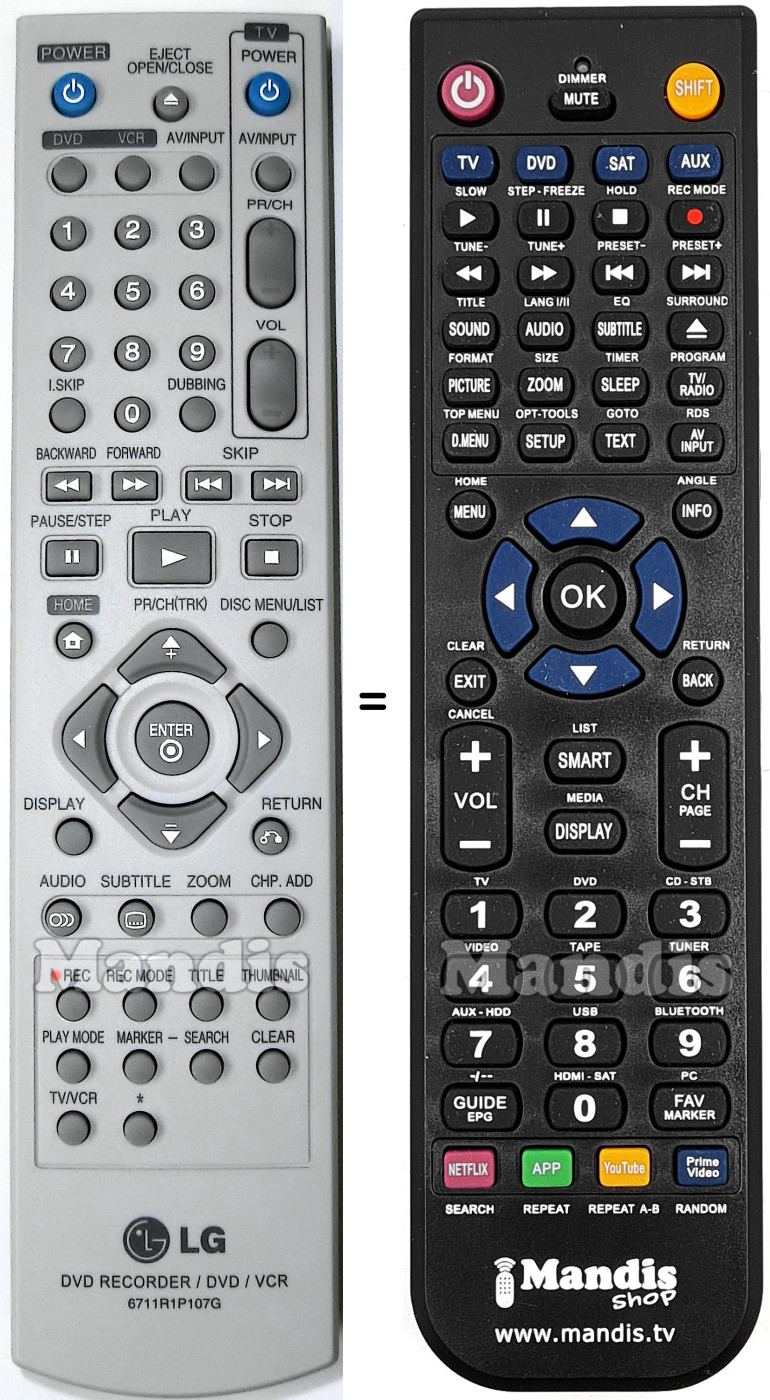 This remote control fully replaces your 6711R1P107G and offers all the functions of the original.