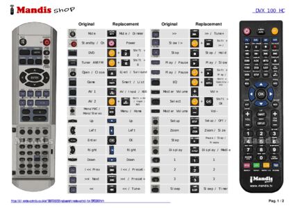 1. Look at the images of the two remote controls: the original (left) and the replacement (right).