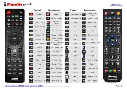 • SHIFT key: Some buttons on the replacement remote control require pressing the SHIFT key before pressing another button to perform certain functions. If a button on the original remote control requires the SHIFT key, it will be indicated in the image.