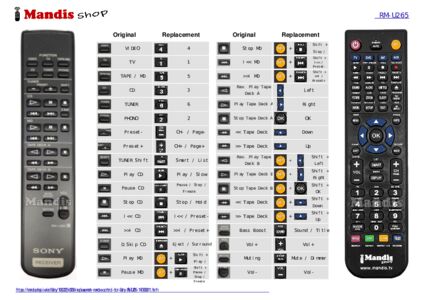 • SHIFT key: Some buttons on the replacement remote control require pressing the SHIFT key before pressing another button to perform certain functions. If a button on the original remote control requires the SHIFT key, it will be indicated in the image.