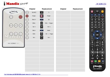1. Look at the images of the two remote controls: the original (left) and the replacement (right).