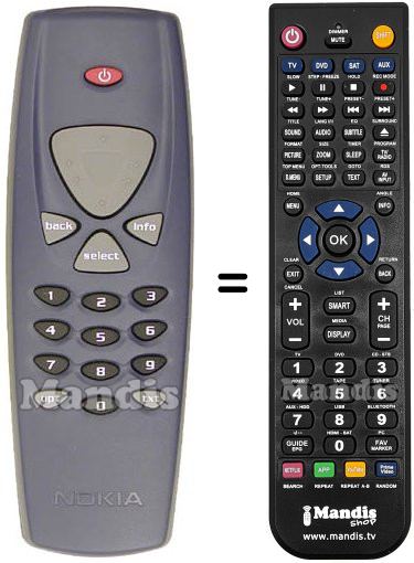 This remote is used for the following brands: Graetz, ITT, Ingelen, Kapsch, Nokia