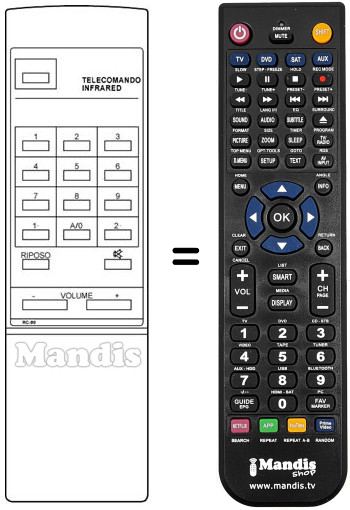 Remote control to replace the original and all its functions.