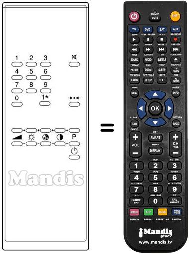 Remote control to replace the original and all its functions.
