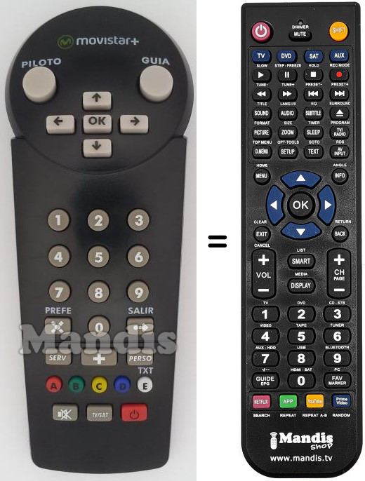 Remote control to replace the original and all its functions.
