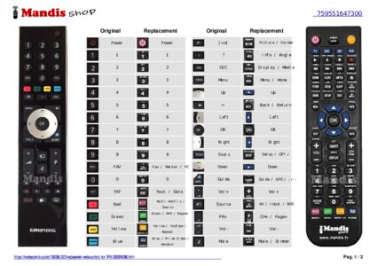 Below, we will show you the correspondence between each button on the original remote control and the button that performs the same function on the replacement remote control. In some cases, you may need to press the SHIFT key before pressing another button to perform certain actions. These additional functions are often not widely used and are included to facilitate understanding of the replacement remote control, or because the original remote control has more buttons than its equivalent.