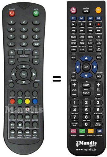 Remote control to replace the original and all its functions.