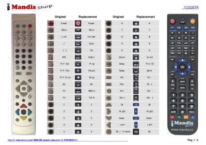 A document is included to help you use the new remote control easily, showing the button correspondence.