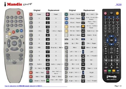 1. Look at the images of the two remote controls: the original (left) and the replacement (right).