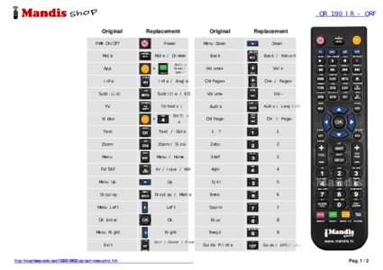 Below, we will show you the correspondence between each button on the original remote control and the button that performs the same function on the replacement remote control. In some cases, you may need to press the SHIFT key before pressing another button to perform certain actions. These additional functions are often not widely used and are included to facilitate understanding of the replacement remote control, or because the original remote control has more buttons than its equivalent.