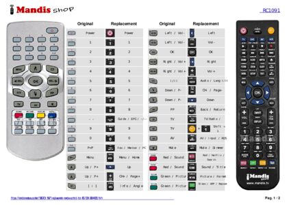Below, we will show you the correspondence between each button on the original remote control and the button that performs the same function on the replacement remote control. In some cases, you may need to press the SHIFT key before pressing another button to perform certain actions. These additional functions are often not widely used and are included to facilitate understanding of the replacement remote control, or because the original remote control has more buttons than its equivalent.