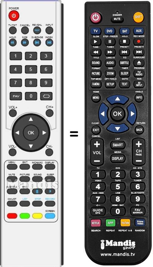 Remote control to replace the original and all its functions. It is not a universal remote but a substitute for the original. You will receive the remote ready to use: you only need to install the batteries. It is not necessary to program it. We offer you our full guarantee that the remote will perform all the functions of the original.