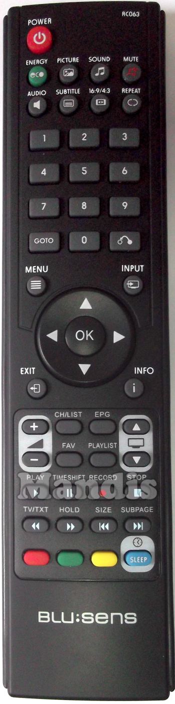 original remote control RC063 used for televisions for the brand Blusens. This is an original remote control.