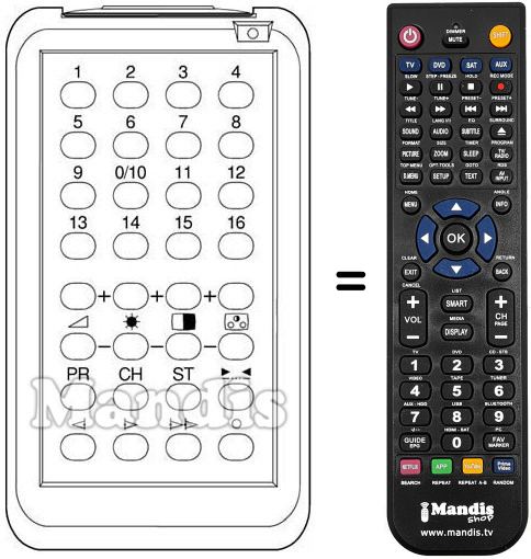 Remote control to replace the original IR 99 CH / 16 PR and all its functions.
