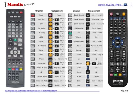 Below, we will show you the correspondence between each button on the original remote control and the button that performs the same function on the replacement remote control. In some cases, you may need to press the SHIFT key before pressing another button to perform certain actions. These additional functions are often not widely used and are included to facilitate understanding of the replacement remote control, or because the original remote control has more buttons than its equivalent.
