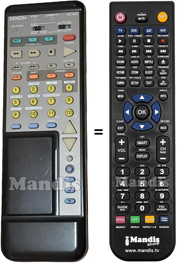 This remote control fully replaces your RC833 and offers all the functions of the original.