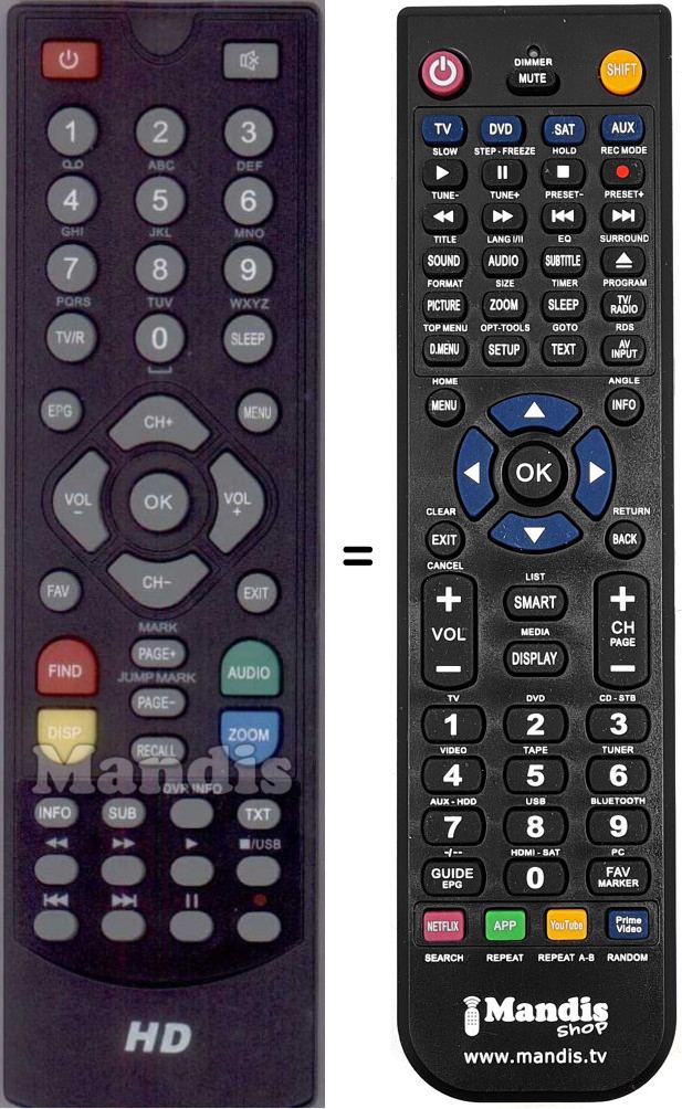 Remote control to replace the original and all its functions.
