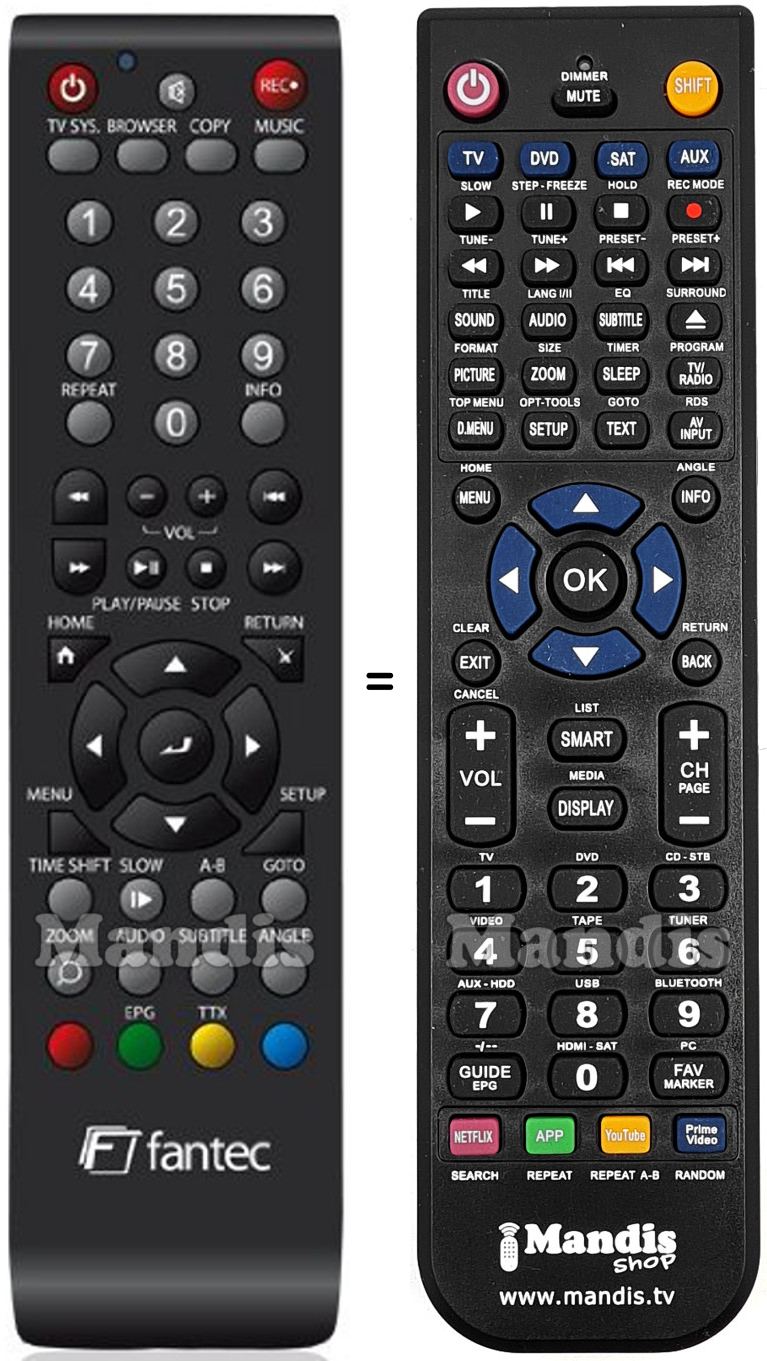 This remote control fully replaces your Fantec001 and offers all the functions of the original.