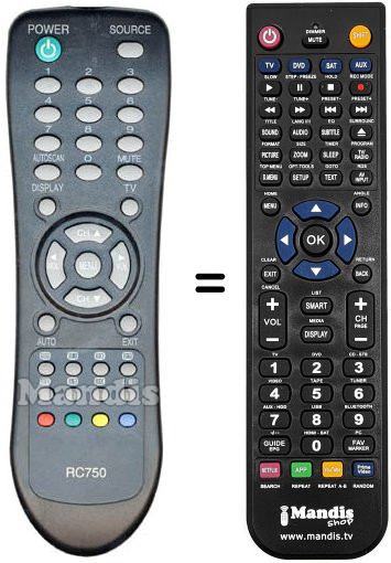 Remote control to replace the original and all its functions.