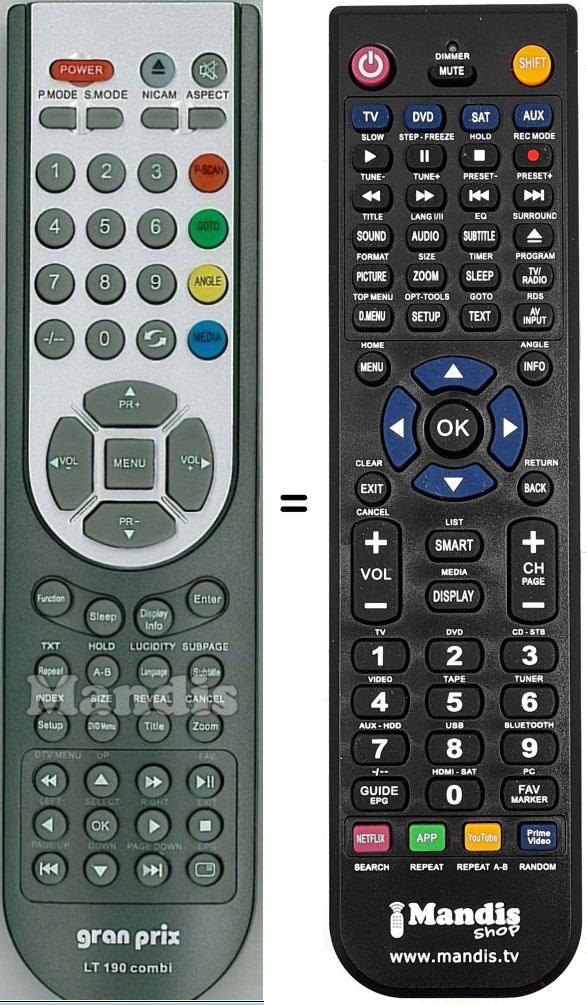 Remote control to replace the original LT190 combi and all its functions.