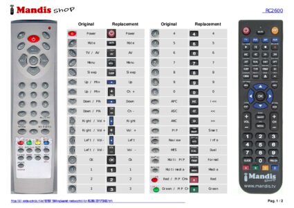 A document is included to help you use the new remote control easily, showing the button correspondence.