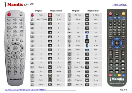This remote control fully replaces your HYD-9905DX and offers all the functions of the original.