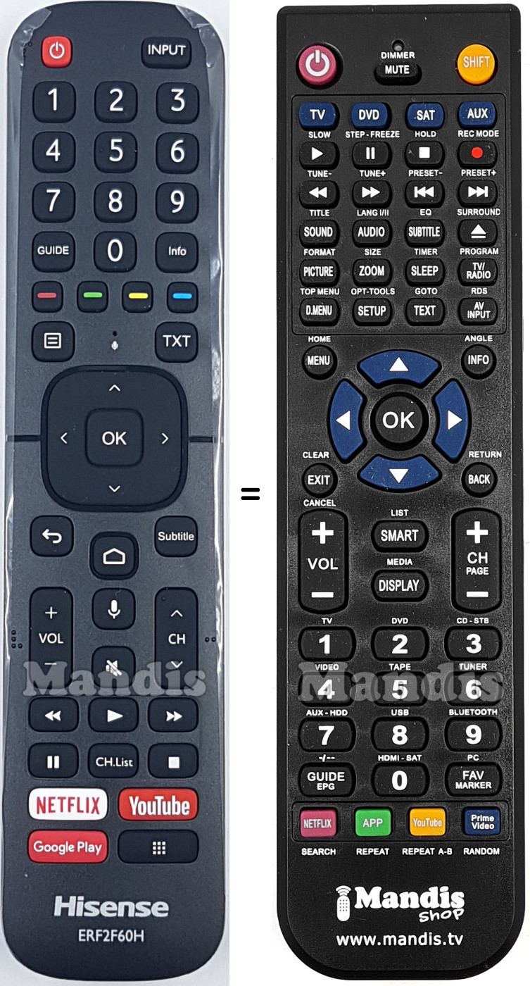 Below, we will show you the correspondence between each button on the original remote control and the button that performs the same function on the replacement remote control. In some cases, you may need to press the SHIFT key before pressing another button to perform certain actions. These additional functions are often not widely used and are included to facilitate understanding of the replacement remote control, or because the original remote control has more buttons than its equivalent.