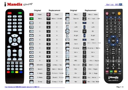Below, we will show you the correspondence between each button on the original remote control and the button that performs the same function on the replacement remote control. In some cases, you may need to press the SHIFT key before pressing another button to perform certain actions. These additional functions are often not widely used and are included to facilitate understanding of the replacement remote control, or because the original remote control has more buttons than its equivalent.