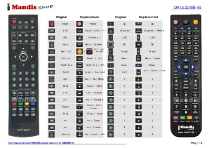 Below, we will show you the correspondence between each button on the original remote control and the button that performs the same function on the replacement remote control. In some cases, you may need to press the SHIFT key before pressing another button to perform certain actions. These additional functions are often not widely used and are included to facilitate understanding of the replacement remote control, or because the original remote control has more buttons than its equivalent.