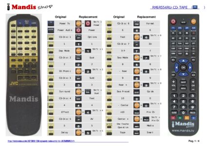 Below, we will show you the correspondence between each button on the original remote control and the button that performs the same function on the replacement remote control. In some cases, you may need to press the SHIFT key before pressing another button to perform certain actions. These additional functions are often not widely used and are included to facilitate understanding of the replacement remote control, or because the original remote control has more buttons than its equivalent.