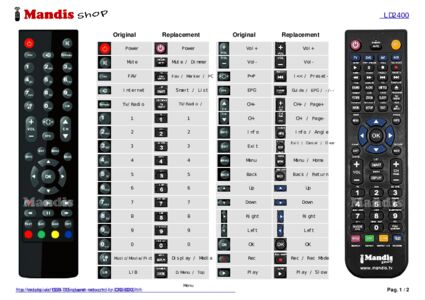A document is included to help you use the new remote control easily, showing the button correspondence.