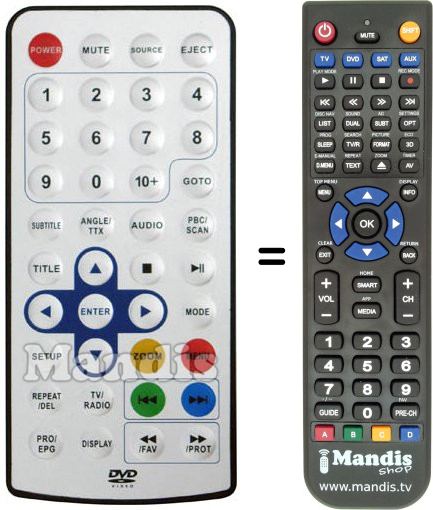 Below, we will show you the correspondence between each button on the original remote control and the button that performs the same function on the replacement remote control. In some cases, you may need to press the SHIFT key before pressing another button to perform certain actions. These additional functions are often not widely used and are included to facilitate understanding of the replacement remote control, or because the original remote control has more buttons than its equivalent.
