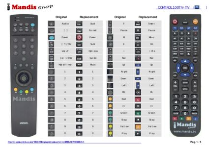 Below, we will show you the correspondence between each button on the original remote control and the button that performs the same function on the replacement remote control. In some cases, you may need to press the SHIFT key before pressing another button to perform certain actions. These additional functions are often not widely used and are included to facilitate understanding of the replacement remote control, or because the original remote control has more buttons than its equivalent.