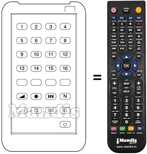 Remote control to replace the original and all its functions.