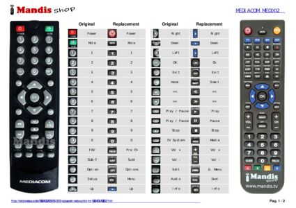 Home > Brands > Remote controls MEDIACOM > Remote control for MEDIACOM MED002