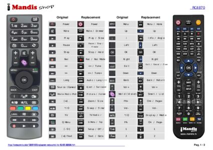 A document is included to help you use the new remote control easily, showing the button correspondence.