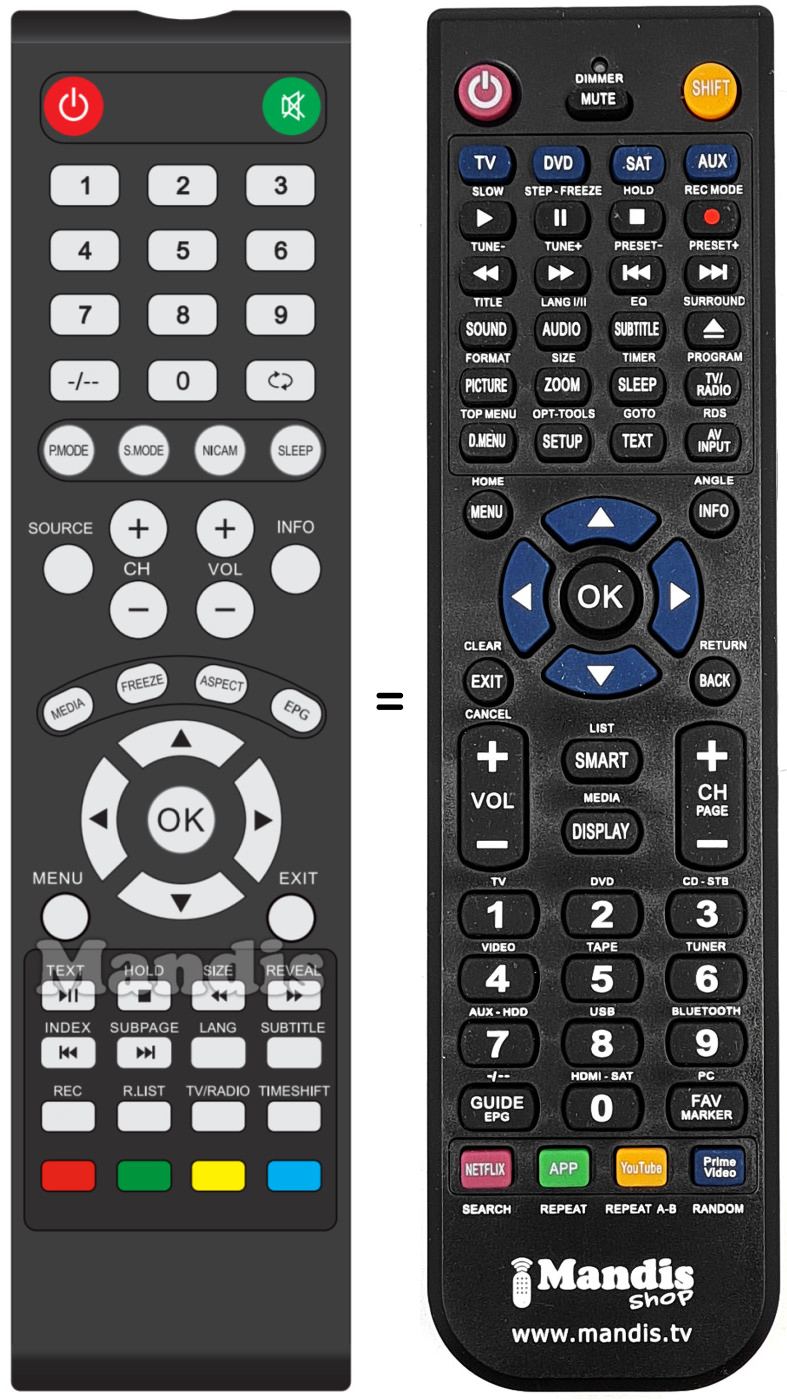 Remote control to replace the original and all its functions.