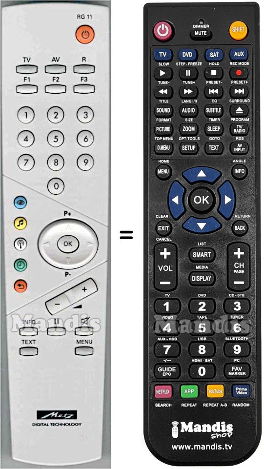 This remote control fully replaces your RG-11 (600RG11G0A2) and offers all the functions of the original.