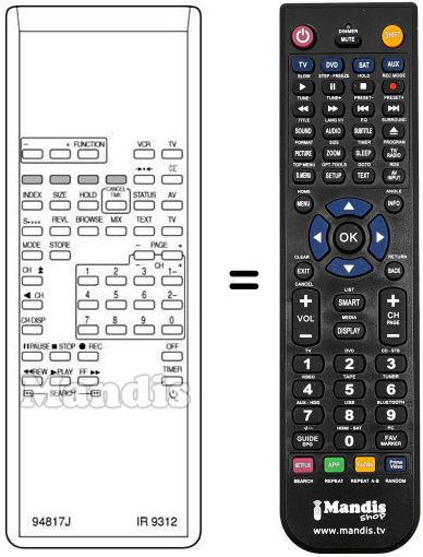 Remote control to replace the original and all its functions.