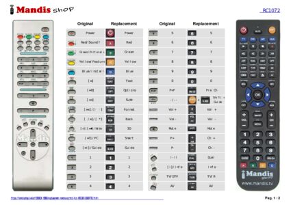 Below, we will show you the correspondence between each button on the original remote control and the button that performs the same function on the replacement remote control. In some cases, you may need to press the SHIFT key before pressing another button to perform certain actions. These additional functions are often not widely used and are included to facilitate understanding of the replacement remote control, or because the original remote control has more buttons than its equivalent.