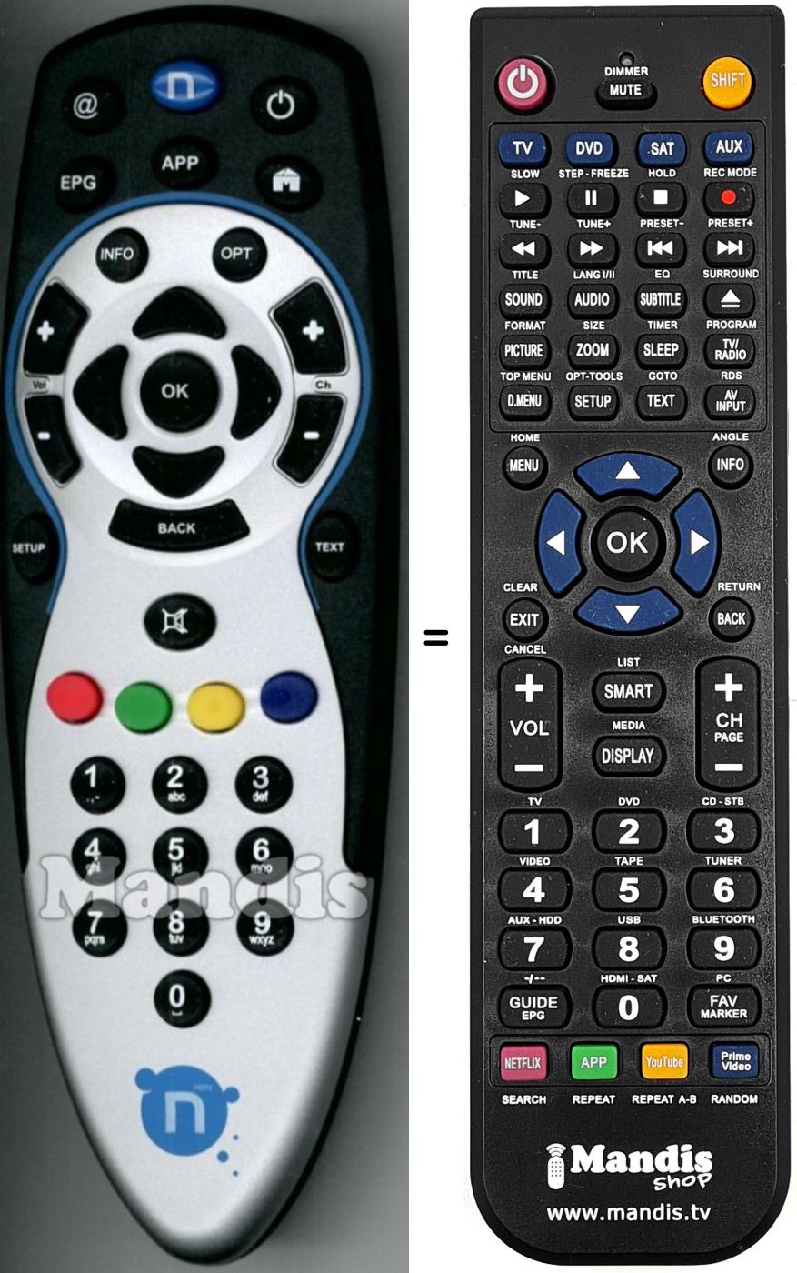 Remote control to replace the original and all its functions.