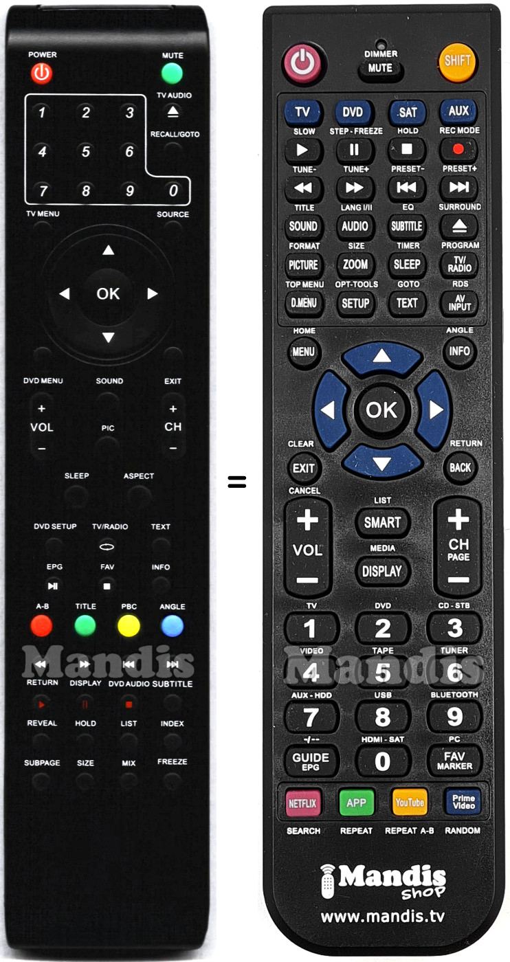 A document is included to help you use the new remote control easily, showing the button correspondence.