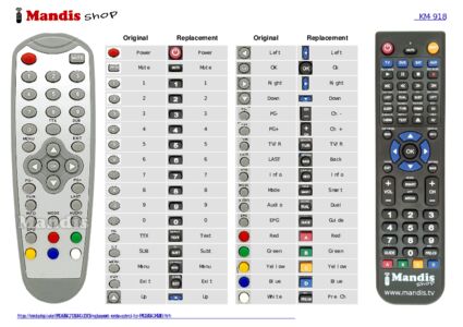 This remote control fully replaces your KM918 and offers all the functions of the original.