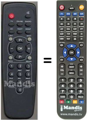 Below, we will show you the correspondence between each button on the original remote control and the button that performs the same function on the replacement remote control. In some cases, you may need to press the SHIFT key before pressing another button to perform certain actions. These additional functions are often not widely used and are included to facilitate understanding of the replacement remote control, or because the original remote control has more buttons than its equivalent.
