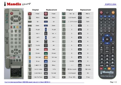 Below, we will show you the correspondence between each button on the original remote control and the button that performs the same function on the replacement remote control. In some cases, you may need to press the SHIFT key before pressing another button to perform certain actions. These additional functions are often not widely used and are included to facilitate understanding of the replacement remote control, or because the original remote control has more buttons than its equivalent.