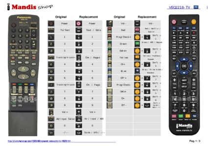 Below, we will show you the correspondence between each button on the original remote control and the button that performs the same function on the replacement remote control. In some cases, you may need to press the SHIFT key before pressing another button to perform certain actions. These additional functions are often not widely used and are included to facilitate understanding of the replacement remote control, or because the original remote control has more buttons than its equivalent.