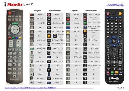 This remote control fully replaces your N2QAYB000486 and offers all the functions of the original.
