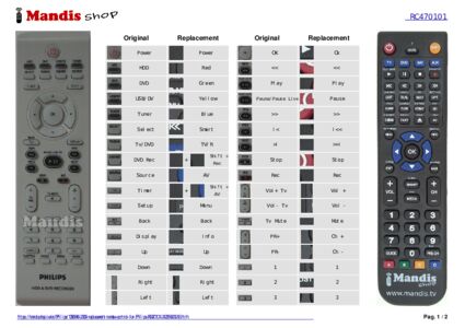 Below, we will show you the correspondence between each button on the original remote control and the button that performs the same function on the replacement remote control. In some cases, you may need to press the SHIFT key before pressing another button to perform certain actions. These additional functions are often not widely used and are included to facilitate understanding of the replacement remote control, or because the original remote control has more buttons than its equivalent.