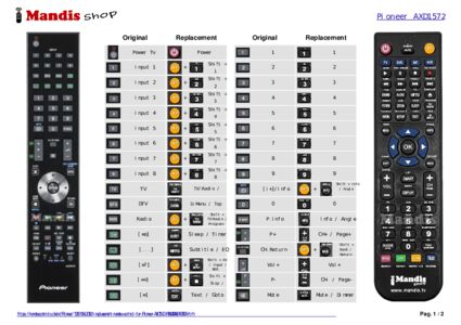 Below, we will show you the correspondence between each button on the original remote control and the button that performs the same function on the replacement remote control. In some cases, you may need to press the SHIFT key before pressing another button to perform certain actions. These additional functions are often not widely used and are included to facilitate understanding of the replacement remote control, or because the original remote control has more buttons than its equivalent.